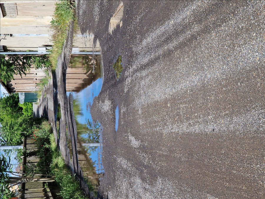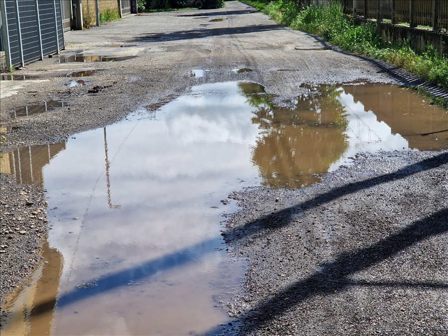 è piena di buche e quando piove l'acqua staziona e rende quasi impossibile la percorrenza a piedi